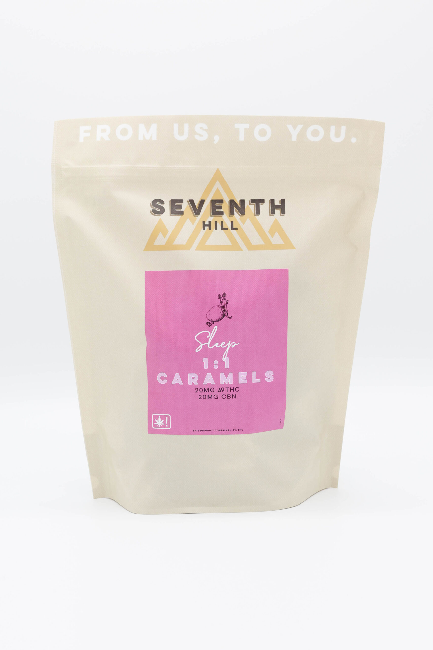 Seventh Hill’s 1:1 CBN Sleep Caramels are the extra potent sleep aid we all need. When paired with relaxing terpenes, CBN can be super relaxing for users. Pair that combo with THC? Lights out, baby. Each piece of our 1:1 CBN Sleep Caramel is made with 20mg CBN and 20mg ∆9THC, plus a relaxing indica terpene profile meant to promote sleep.