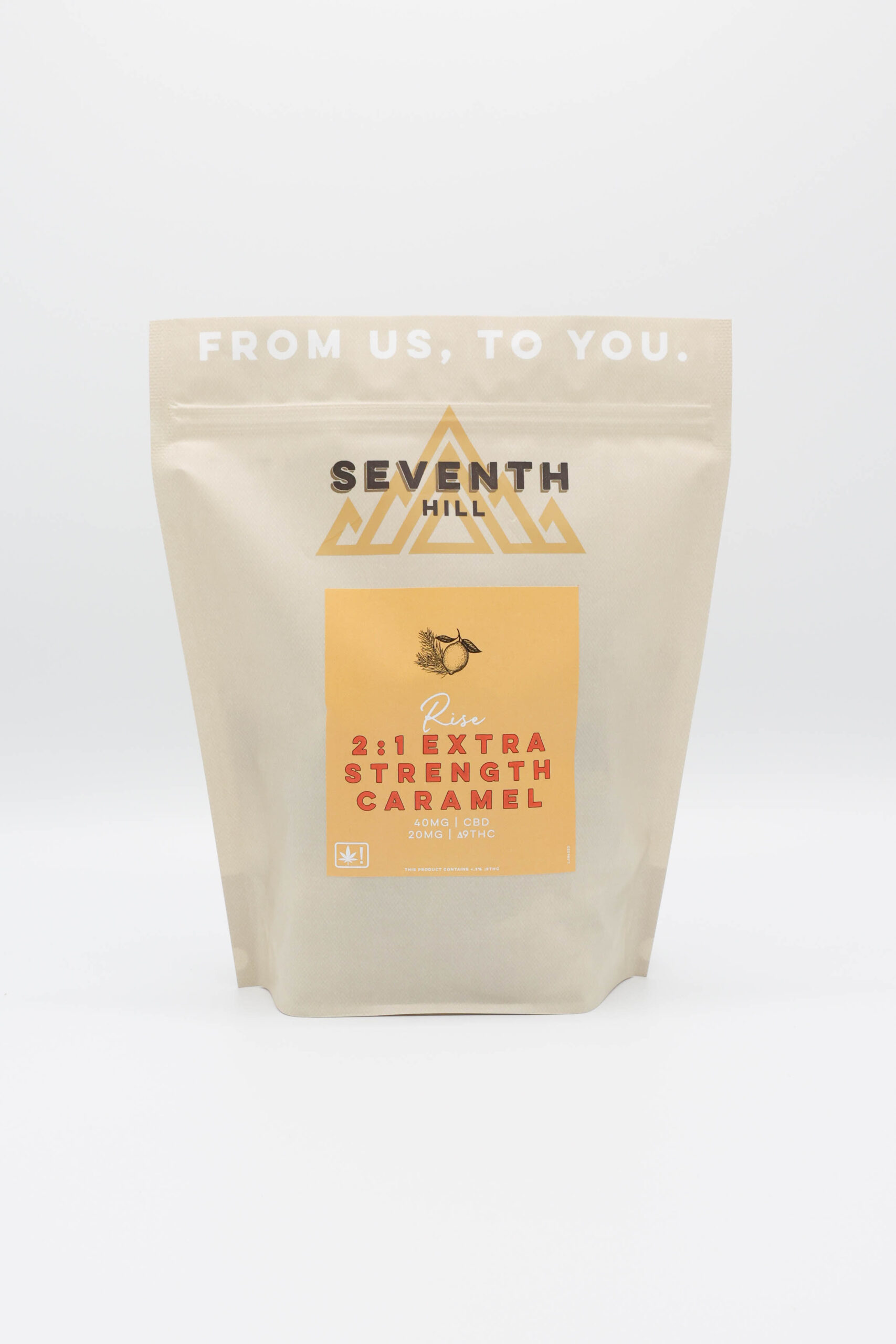 Seventh Hill’s 2:1 Extra Strength Caramels are for those very, very experienced. This cannabinoid-packed caramel was designed for customers that have a hard time feeling edibles; trust us, you’ll feel this one! With twice as much CBD:THC, this extra potent edible hits deep relieving even the most stubborn pains and anxiety. Each piece is packed with 40mg of CBD, 20mg of ∆9THC + an uplifting sativa terpene profile.
