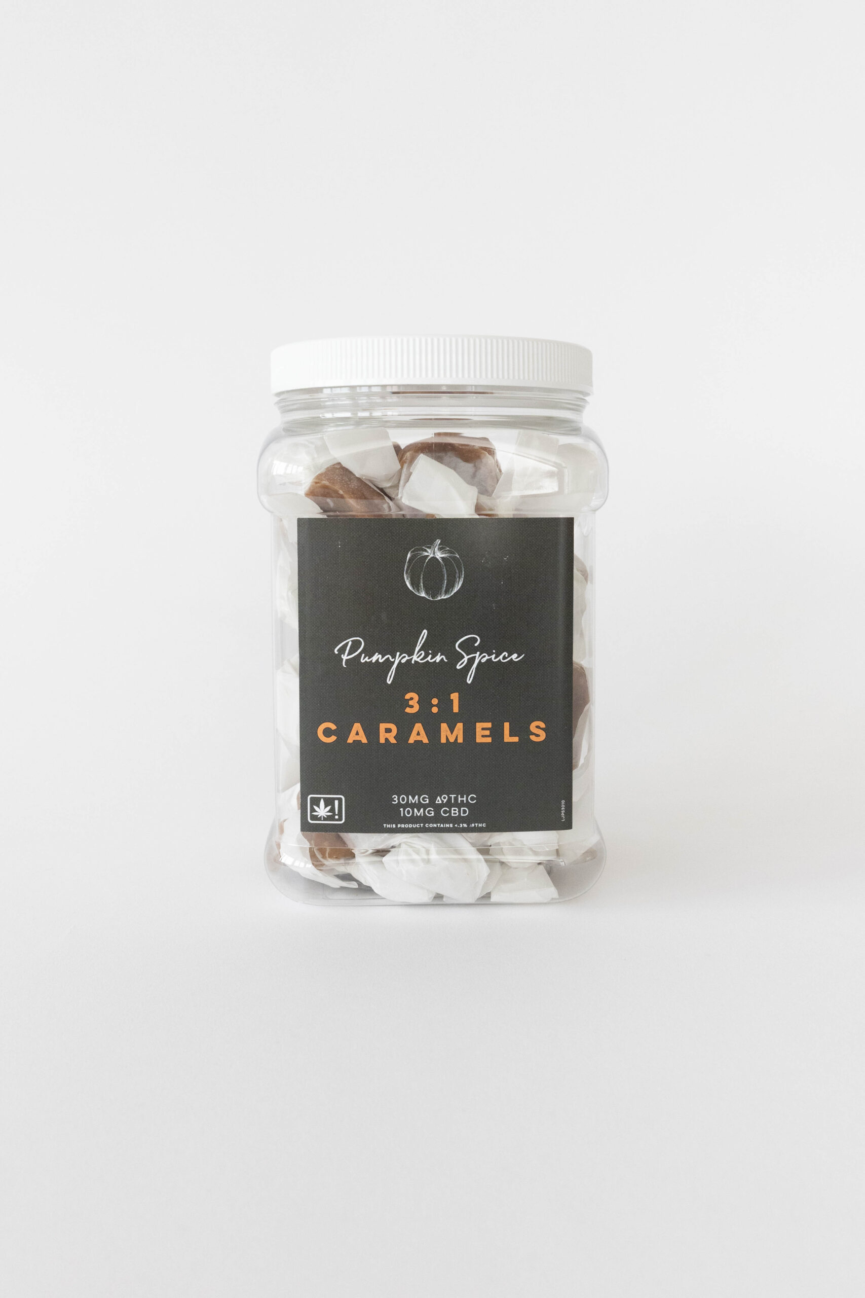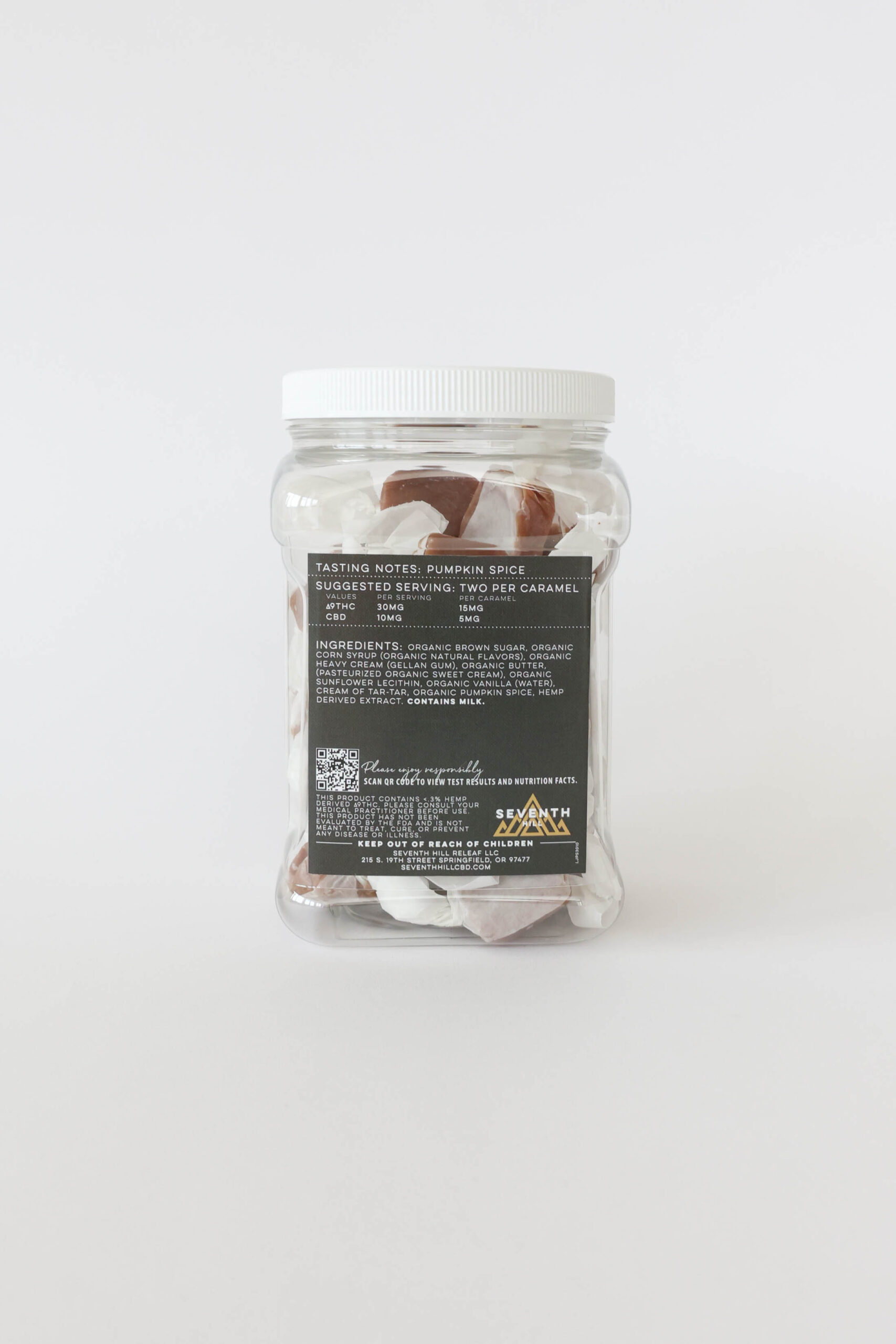 Organic Brown Sugar (Organic Sugar, Organic Cane Sugar), Organic Butter (Pasteurized Organic Sweet Cream), Organic Heavy Cream (Organic Heavy Cream, Gellan Gum), Organic Corn Syrup (High Fructose Corn Syrup), Hemp Derived Extract, Organic Sunflower Lecithin, Organic Vanilla (Water, Organic Alcohol), Cream of Tartar, Pink Himalayan Salt, Organic Pumpkin Spice