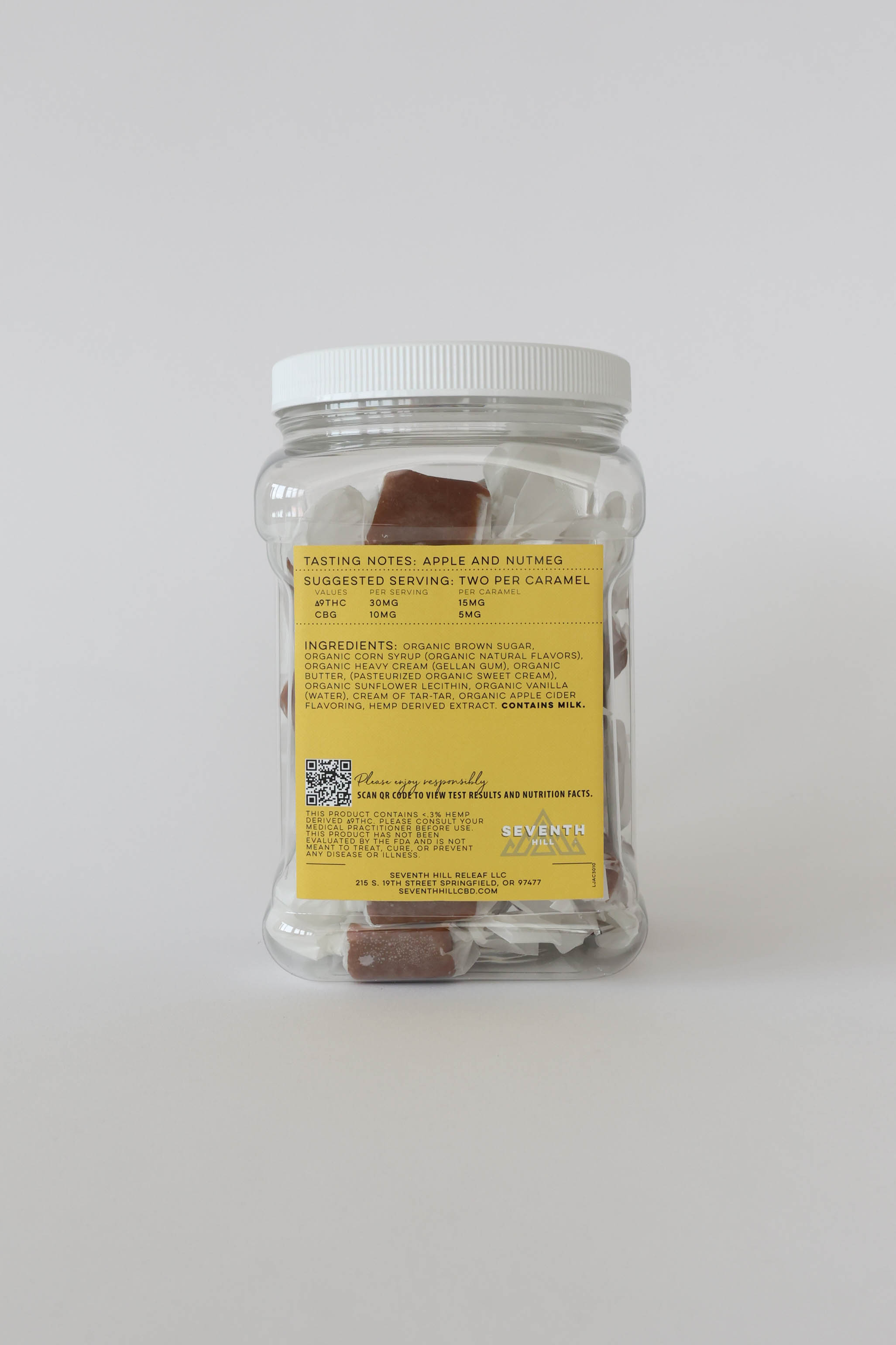 Organic Brown Sugar (Organic Sugar, Organic Cane Sugar), Organic Butter (Pasteurized Organic Sweet Cream), Organic Heavy Cream (Organic Heavy Cream, Gellan Gum), Organic Corn Syrup (High Fructose Corn Syrup), Hemp Derived Extract, Organic Sunflower Lecithin, Organic Vanilla (Water, Organic Alcohol), Cream of Tartar, Pink Himalayan Salt, Organic Apple Cider Flavoring
