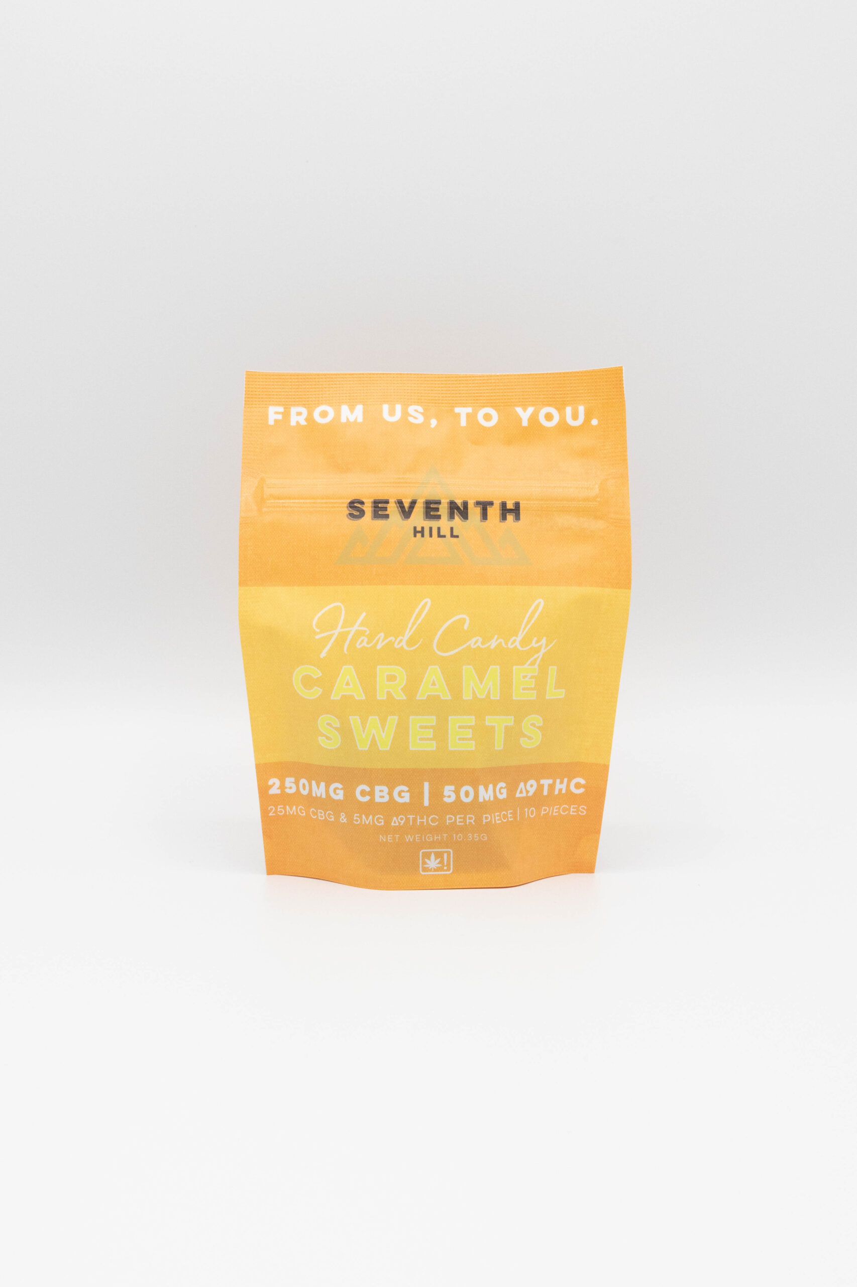 Indulge in a sweet, slow‑melting treat with Seventh Hill’s Caramel Sweets Hard Candy, a handcrafted hemp‑derived edible combining rich caramel flavor with premium cannabinoids. Each piece of the CBG Caramel Sweets delivers 25mg of CBG and 5mg of Δ9 THC, offering a balanced cannabinoid experience with a focus on CBG—known for its unique effects in hemp products.